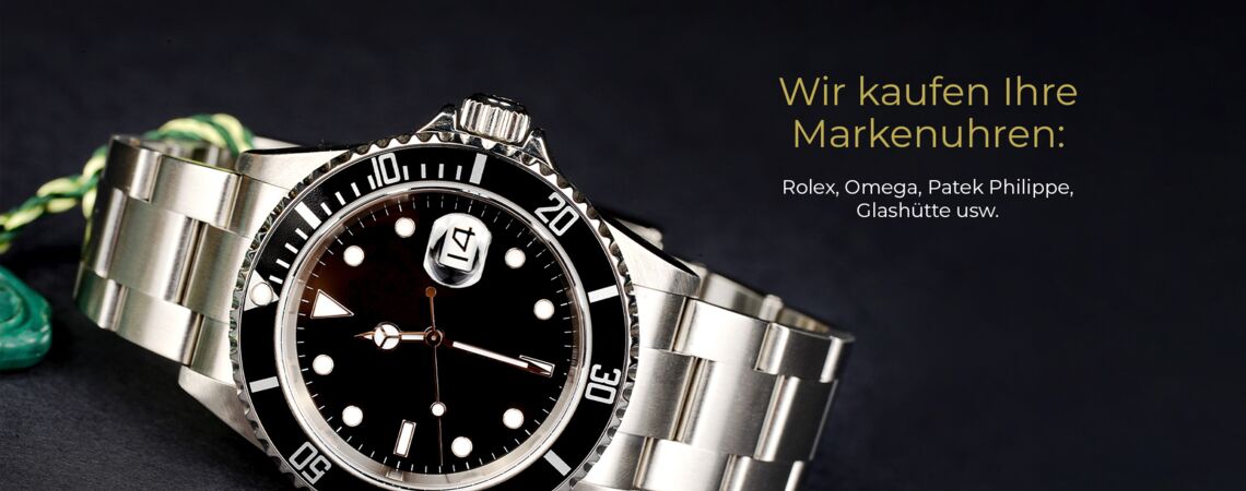 - Uhren und Markenuhren, wie z. B. Rolex, Omega, Patek Philippe, Glashütte etc.